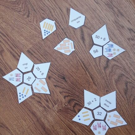 Je vous propose ce soir une contribution qui m’a beaucoup plu! Il s’agit d’un petit jeu sous forme d’étoiles, en lien avec la méthode de Nicolas Pinel (MHM): les fleurs des nombres. Ce jeu a été réalisé par Snippy à l’école que je remercie vivement! Le but est simple: il s’agit d’associer un nombre en chiffres …